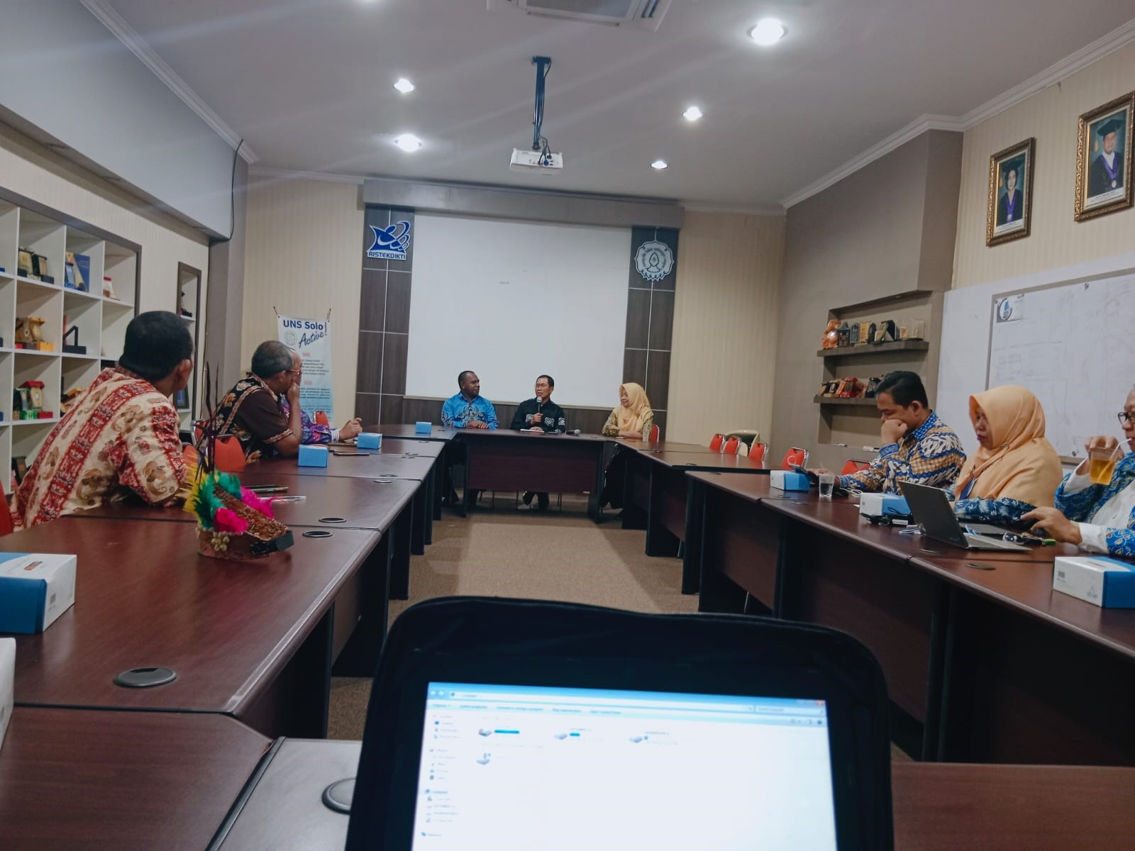 Rombongan UNIPA disambut oleh kepala Lembaga Pengembangan dan Penjaminan Mutu Pendidikan (LPPMP) Universitas Sebelas Maret Surakarta Prof. Dr. Sarwiji Suwandi, M. Pd., didampingi oleh sekretaris LPPMP Dr. Anjar Sri Ciptorukmi N, S.H.,M.H., Kepala Pusat Pengembangan Sistem Pembelajaran (PPSP) Dr. Tri Murwaningsih, M.Pd., Kepala Pusat Pengembangan Teknologi Informasi untuk Pembelajaran (PPTIuP) Dr. Daru Wahyuningsih, S.Si.,M.Pd., Kepala Pusat Pengembangan Sistem Manajemen Mutu (PPSMM) Inayati, S.T.,M.T.,Ph.D., Kepala Bagian Tata Usaha LPPMP Eko Mursito, S.T., Koordinator Bidang Merdeka Belajar Pusat Pengembangan Merdeka Belajar Kampus Merdeka Budi Legowo, S.Si., M.Si., Koordinator Bidang Pengembangan Model dan Media Pembelajaran Pusat Pengembangan Sistem Pembelajaran (PPSP)Dr. Sasmini, S.H., LL.M