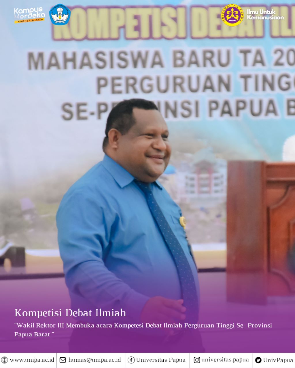 Unipa-Manokwari,Lomba Debat Ilmiah Mahasiswa yang dilaksanakan di Aula Utama Universitas Papua pada hari Selasa (31/5) menghadirkan 14 peserta dari berbagai Perguruan Tinggi (PT) yang ada di Provinsi Papua Barat dan Papua Barat Daya. Tujuan kegiatan ini adalah untuk mencari bibit-bibit unggul dalam persiapan mengikuti debat Mahasiswa tingkat regional dan nasional.