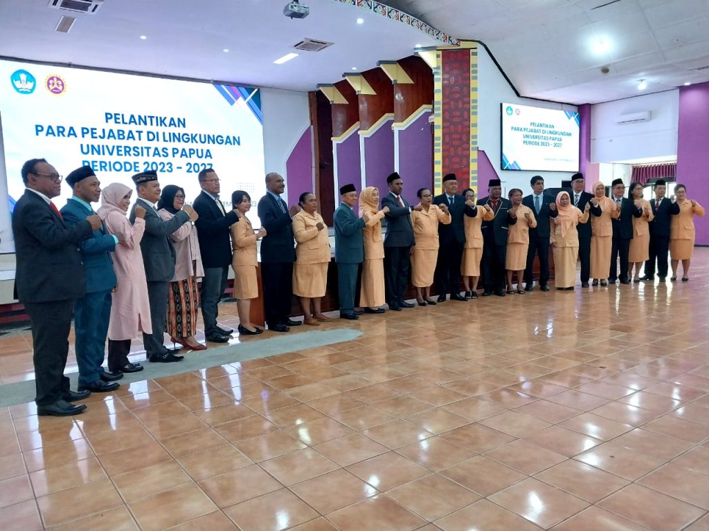REKTOR  MEKY SAGRIM LANTIK 12 PEJABAT DI LINGKUNGAN UNIPA, SEPULUH DIANTARANYA DEKAN PERIODE 2023-2027