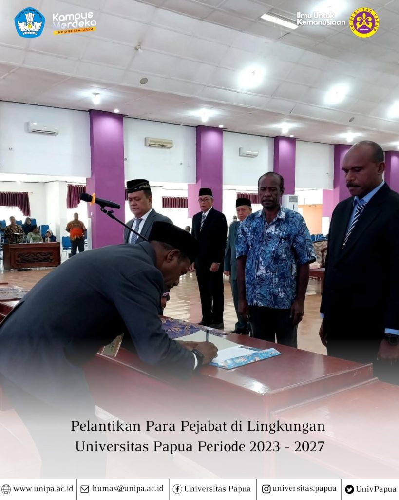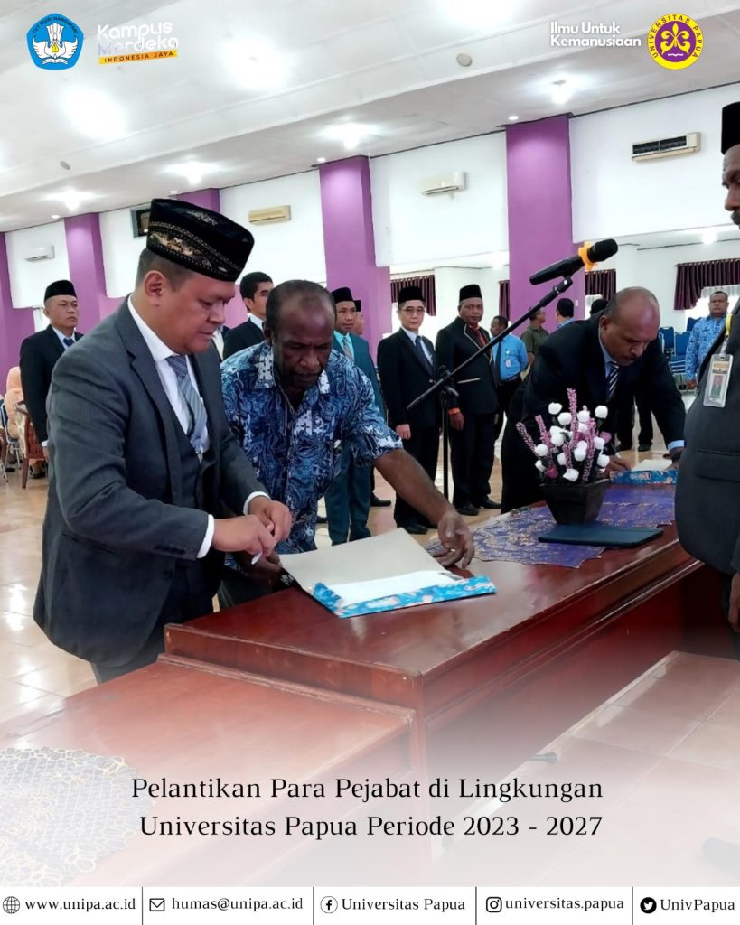 MANOKWARI.UNIPA.AC.ID, (12/9)  Bertempat di Aula Utama, rektor universitas Papua Dr. Meky Sagrim, SP, M.Si, pada hari ini (12/9) melantik 12 pejabat di lingkungan Unipa, sepuluh di antaranya adalah dekan terpilih periode 2023-2027.