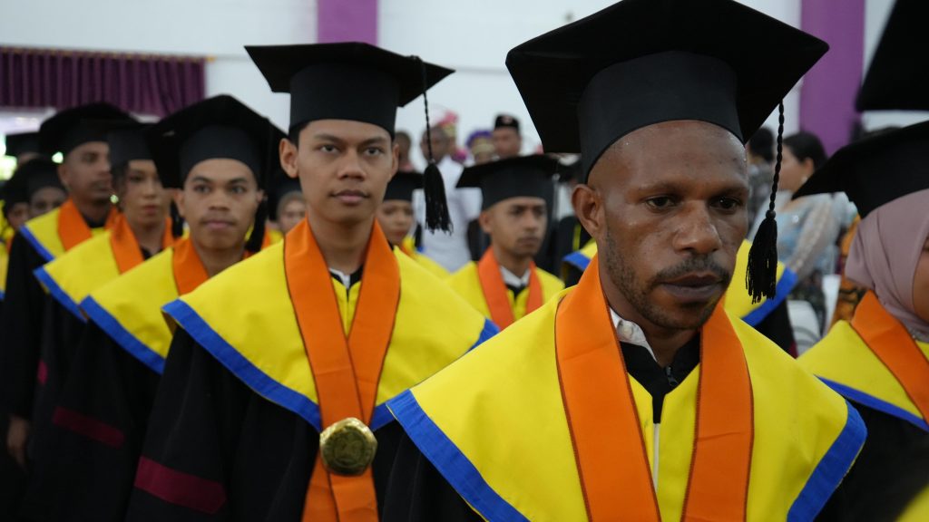 Manokwari, www.unipa.ac.id. Menjelang penutupan semester gasal Universitas Papua (Unipa) pada hari ini Rabu (20/11) kembali mewisuda 428 lulusan. Jumlah tersebut terdiri dari 42 orang Ahli Madya, 345 Sarjana, 39 orang Magister dan 3 lulusan Doktor. Jumlah tersebut berasal dari 12 fakultas dan 1 Program Pasca Sarjana (PPs) yang tersebar di lingkungan unipa. Wisuda periode I tahun akademik 2024/2025 itu di waranai dengan pestasi membanggakan yang di torehkan oleh 27 lulusan dengan predikat pujian.