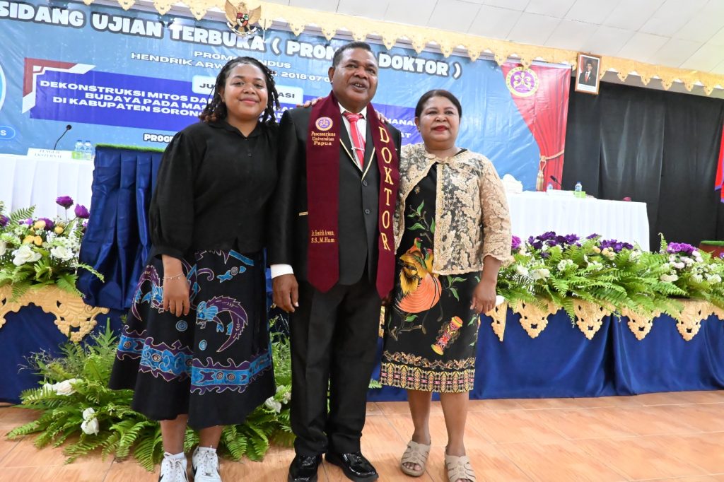 Hari ini saudara Arwam menjadi alumni ilmu lingkungan Unipa. Raihan ini adalah suatu kebanggaan, kemana saja pergi moto unipa “Ilmu Untuk Kemanusiaan” terus terpatri dalam diri Hendrik Arwam sebagai doktor anak Papua. Ungkap Dr. Hugo dalam sambutan singkatnya.
