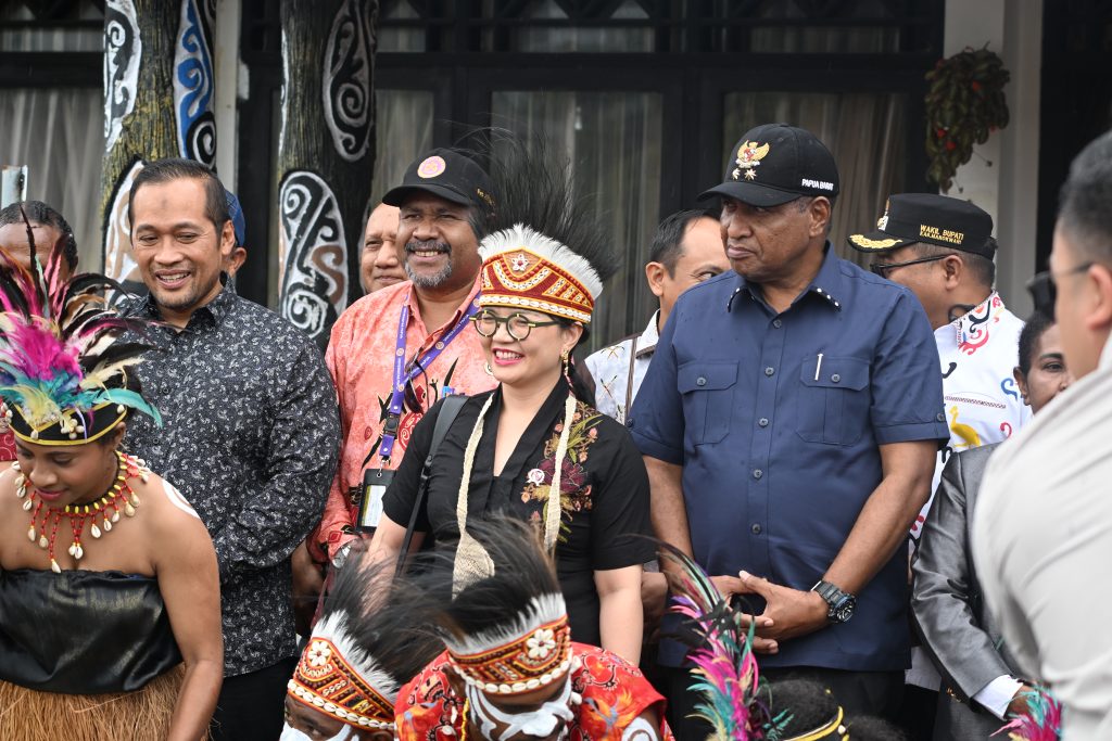 Rektor Universitas Papua (UNIPA), Dr. Hugo Warami, bersama Wakil Gubernur Papua Barat, Mohamad Lakotani, SH, M.Si, menyambut dengan hangat Ibu Stella di Bandara Udara Rendani. Acara penyambutan ditandai dengan tradisi lokal, yakni pemakaian Noken dan Makota, serta menginjakkan kaki pada piring adat.