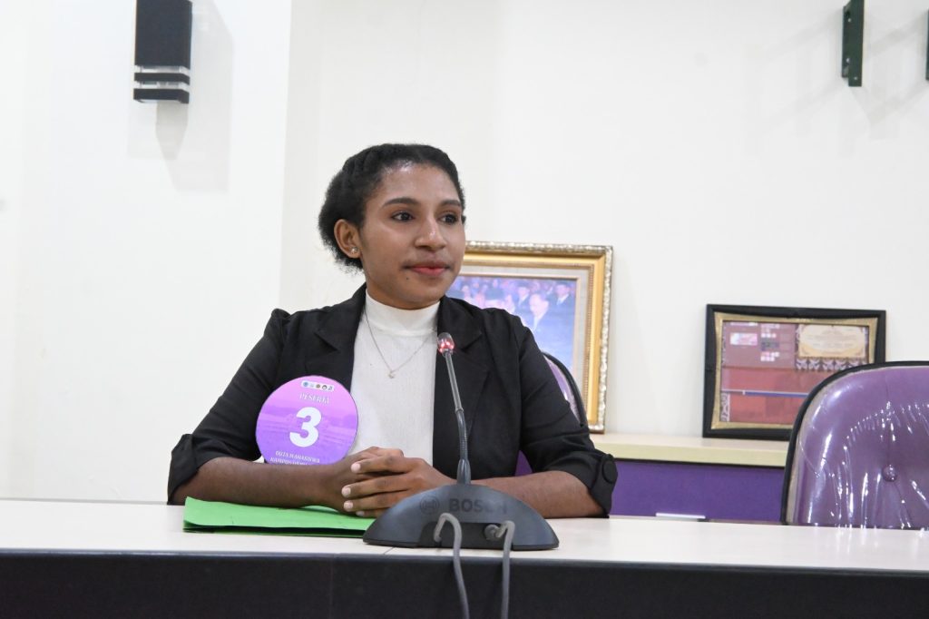 Nomor urut 3 dari Fakultas Sastra dan Budaya bernama Ruth Tabuni, ia tampil memukau dengan gaya khasnya, mempunyai cita-cita ingin menjadikan semua mahasiswa unipa menguasai bahasa asing, dan teknologi, karena menurutnya di era sekarang penguasaan bahasa asing dan Teknologi di kampus unipa adalah kebutuhan utama untuk membuka cakrawala dunia, ungkapnya.