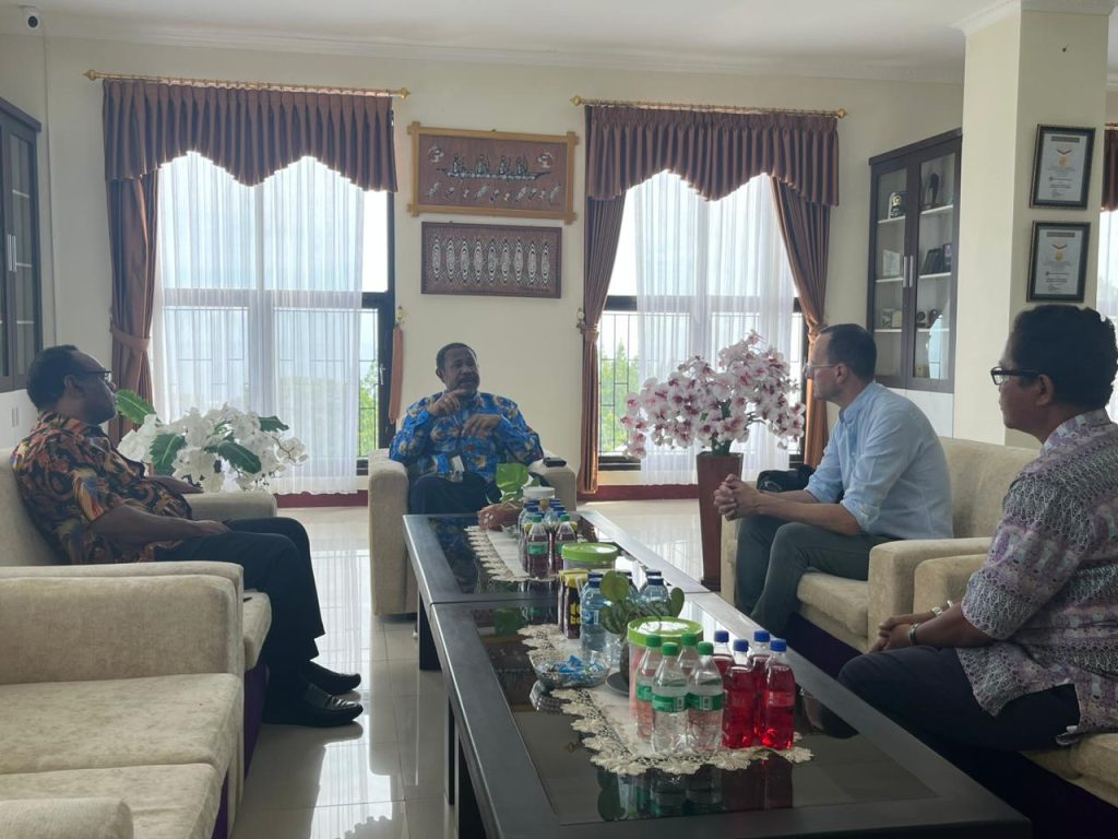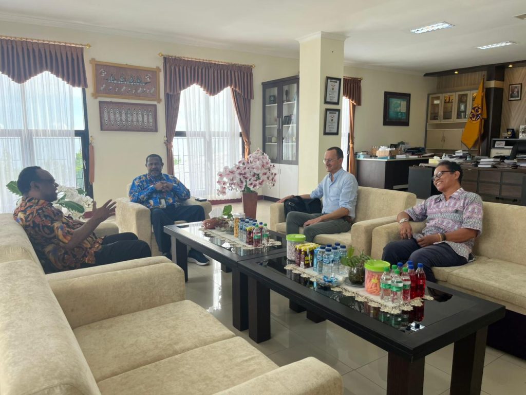 Manokwari, PapuaPapua Barat, www.unipa.ac.id. โ Rektor Universitas Papua (UNIPA) Prof. Hugo Warami, pada hari Kamis (12/2), didampingi oleh Kepala Lembaga Penelitian Prof. Fredy Pattiselano dan Wakil Rektor Bidang Perencanaan dan Kerjasama Dr. Yusuf W. Sawaki, menerima kunjungan dari Mark Hughes, pimpinan Royal Botanic Garden Edinburgh (RBGE) Inggris. Pertemuan ini bertujuan untuk membahas kerjasama yang telah terputus antara kedua institusi serta merencanakan langkah-langkah kolaborasi di masa depan.