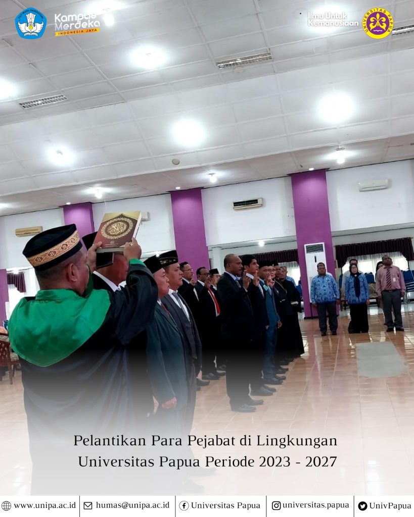 MANOKWARI-UNIPA. (22/6) Universitas Papua (UNIPA) melalui LembagaPenelitian dan Pengabdian Kepada Masyarakat (LPPM) melakasanakan Kegiatan Pelepasan Mahasiswa Kuliah Kerja Nyata (KKN) semester Gasal 2023/2024 bertempat di lantai dasar gedung rektorat Unipa pada hari Jumat (22/6). Acara pelepasan tersebut di hadiri Rektor Unipa Dr. MekySagrim, SP, M.Si, Kepala Biro Perencanaan Akademik dan Perencanaan Edison Bebari, S.Sos, M.PA, […]